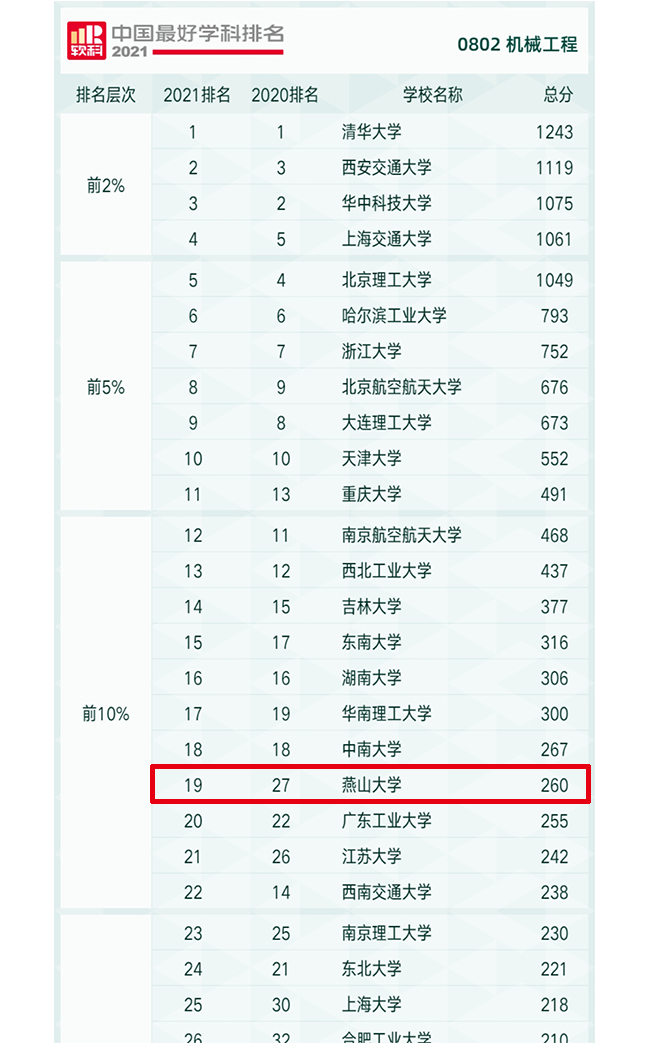 乐竞(中国)一站式服务官网共有13个学科上榜。其中,机械工程学科排名位居全国前10%,是河北省高校唯一进入前10%的学科;材料科学与工程、控制科学与工程2个学科进入全国前20%(全省共有5所高校的9个学科进入前20%)。
