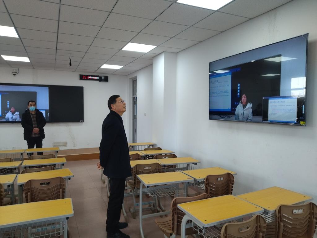【新闻中心讯】1月26日,副校长赵永生带领教务处处长金海龙、副处长赵逢达及相关工作人员视察了智慧教室项目设施建设情况。