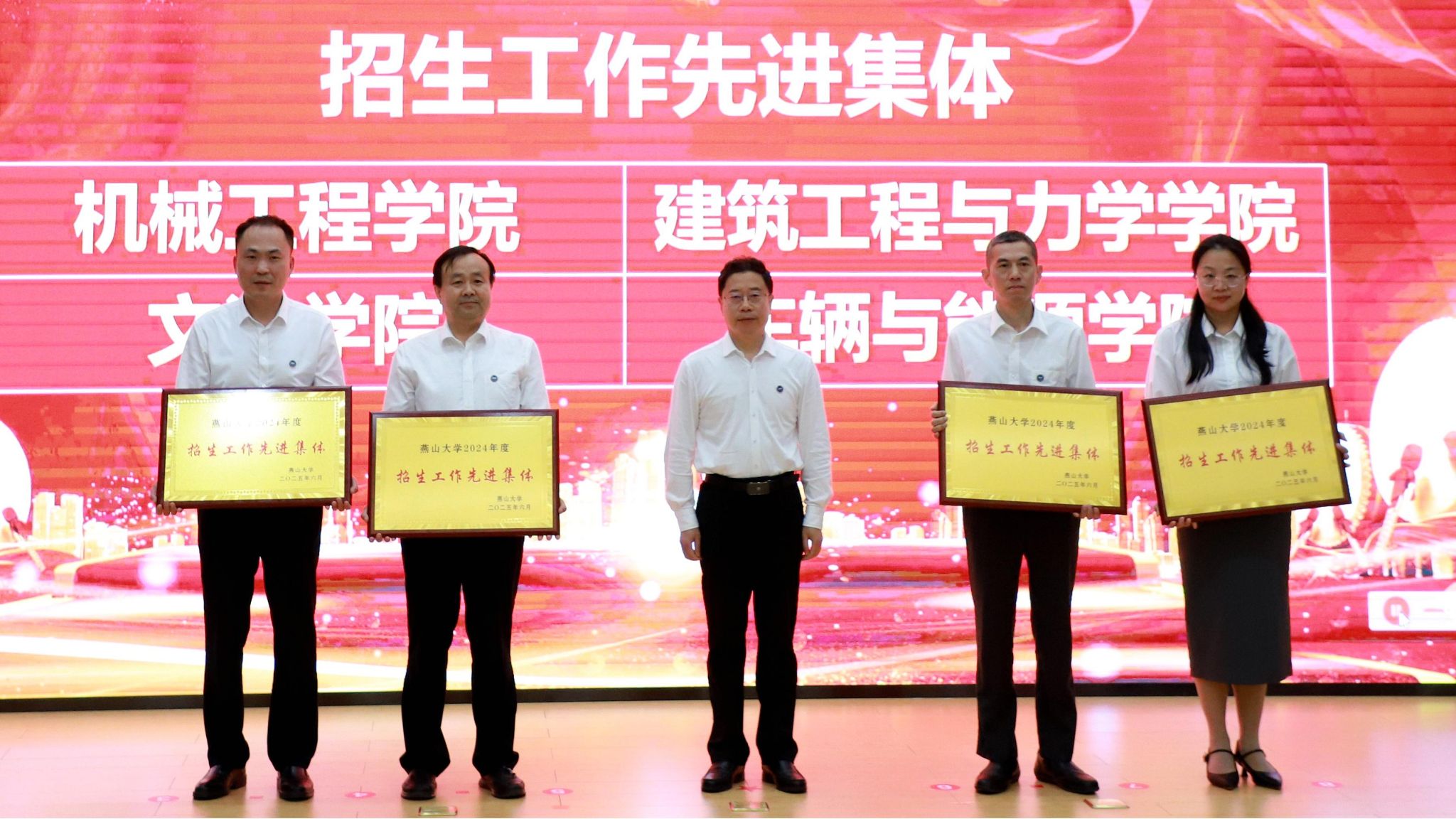 会上,党委副书记蔡星周宣读了《关于表彰乐竞(中国)一站式服务官网招生工作先进集体和先进个人的决定》。党委书记赵险峰等校领导分别向荣获学校“招生工作先进集体”“招生工作先进个人”“招生工作突出贡献个人”颁发了奖牌和证书,并向他们表示热烈祝贺。