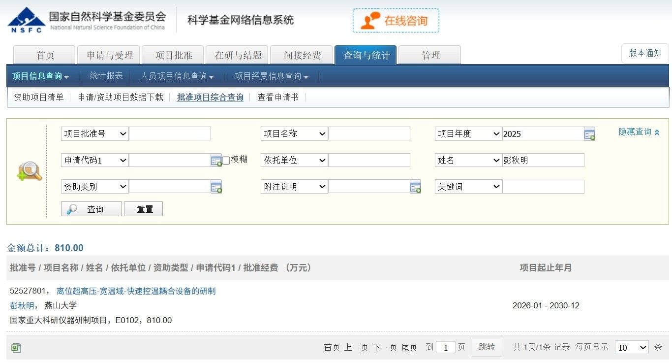 国家重大科研仪器研制项目面向科学前沿和国家需求,以科学目标为导向,旨在鼓励和培育具有原创性思想的探索性科研仪器研制,着力支持原创性重大科研仪器设备研制,为科学研究提供更新颖的手段和工具,是国家自然科学基金资助体系中体量最大、影响力最广的项目类型之一。项目成功获批,是彭秋明教授科研团队长期坚持不懈探索与积累的结果,也是我校基础研究能力和工程技术水平综合实力的集中体现。