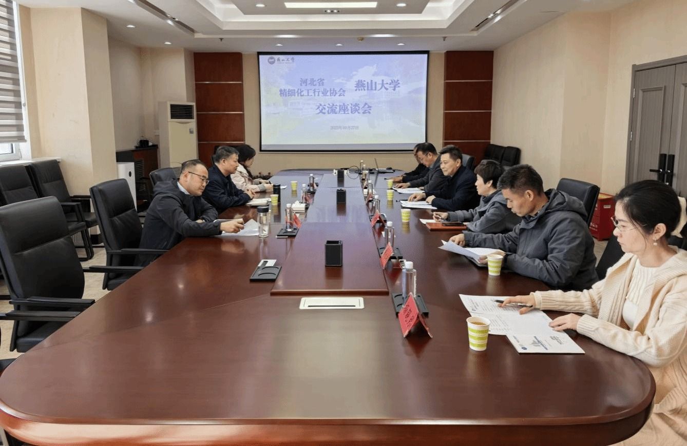 对接座谈会在世纪楼2101会议室举行。王德松系统介绍了学校的发展历程以及在化学工程、精细化工等领域的科研优势。赵思韬介绍了河北省精细化工行业协会的基本情况、职能定位以及在服务行业、引领创新中所发挥的桥梁纽带作用。协会核心成员单位彩客集团副总经理杨猛围绕企业技术需求与产业布局进行了详细介绍。座谈会上,与会专家就联合技术攻关、创新平台共建、科技成果转化等议题展开讨论,并在多个领域达成初步合作共识。各方一致认为,此次对接将进一步畅通合作渠道,有力推动产学研深度融合,并为后续深化合作奠定了坚实基础。