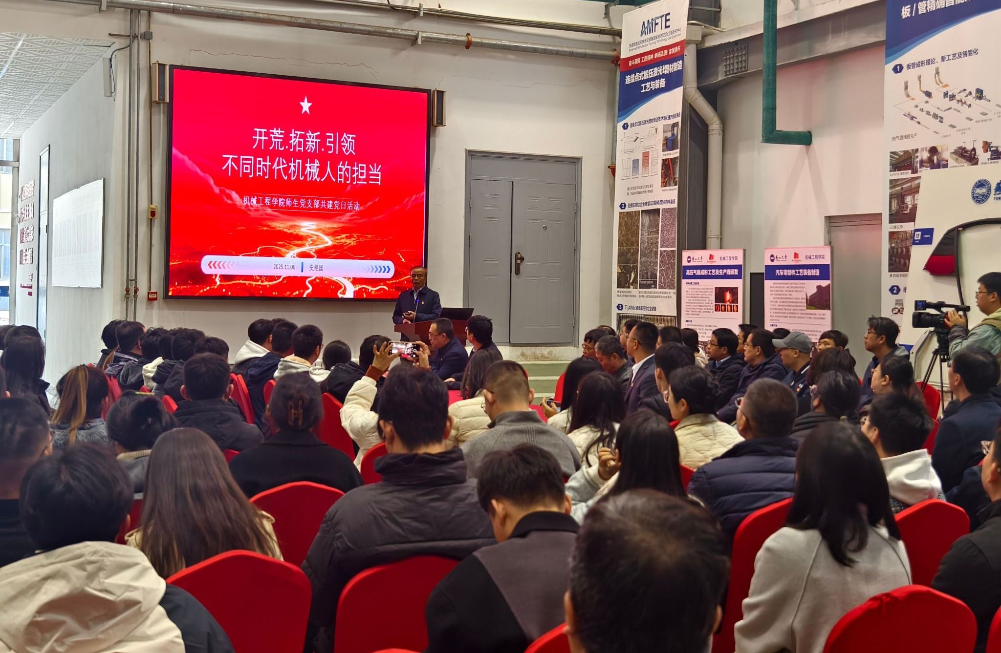 【新闻中心讯】为充分发挥国、省、校三级党建“双创”“双带”“双百”培育建设党组织的示范引领作用,推动组织生活提质增效,增强基层党组织的凝聚力、战斗力,11月6日下午,学校组织开展2025年度第三期组织生活“研学堂”主题党日示范观摩活动。学校第三批校级“党建工作样板支部”机械工程学院机械电子工程系党支部、第三批全国高校“百个研究生样板党支部”机械工程学院机械电子工程系研究生第二党支部以“传承专业薪火 共筑科研梦想”为题联合开展主题党日,为学校师生党支部强化政治教育、突出党性锻炼、创新活动形式提供样板示范。党委组织部部长兼党校副校长董国疆、党委组织部副处级专职组织员韩倩,正科级专职组织员,教师党支部及学生党支部书记代表100余人参加观摩。
