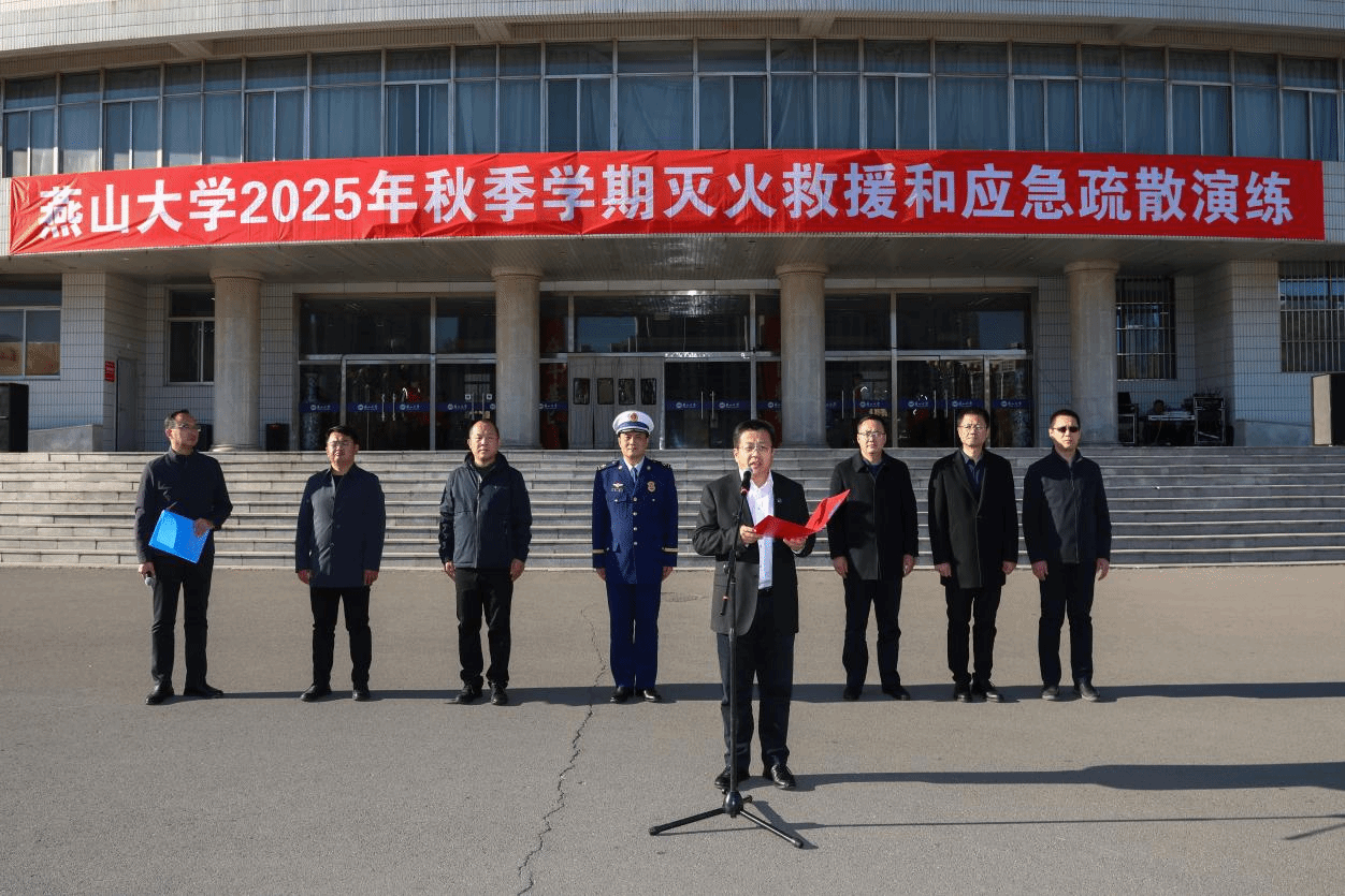 【新闻中心讯】11月13日下午,乐竞(中国)一站式服务官网联合秦皇岛市消防救援支队,在东校区图书馆举行2025年秋季学期灭火救援与应急疏散演练。学校党委副书记蔡星周出席并作动员讲话,秦皇岛市消防救援支队新闻宣传科科长薛松,以及学校学生工作处、信息技术中心、期刊社、档案馆、后勤服务中心、东北亚古丝路文明博物馆、出版社等部门、师生代表共1000余人参加演练和观摩。活动由安全工作处处长陈徽主持。