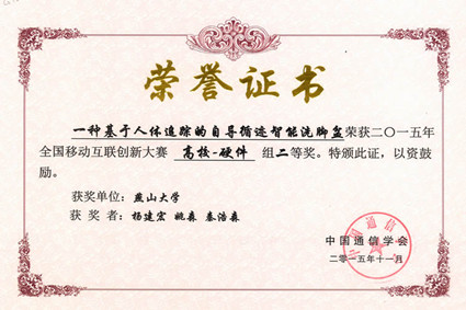 【新闻中心讯】近日,由国家工业和信息化部、中国科学技术协会作为指导单位,中国通信学会、工信部全国移动互联网产业孵化中心联合主办的2015年全国移动互联创新大赛决赛在北京中关村国际创客中心举办,里仁学院学生团队“燃梦工作室”荣获高校硬件组国家二等奖。