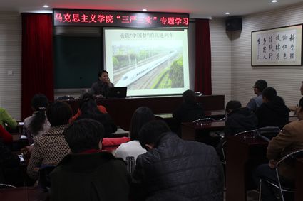 【新闻中心讯】11月6日下午,马克思主义学院在人文馆502举办“三严三实”专题辅导讲座,学院副院长刘永志向全院教工党员做了题为《讲党性、守规矩、做合格党员》的专题辅导讲座,学院领导班子成员、全体教职工参加了专题讲座。