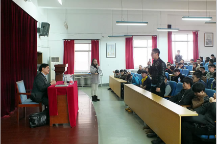 讲座中,李国忠董事长也与同学们进行了互动交流,也为现场同学答疑解惑。他细心地回答了同学们有关学习、就业等方面的问题。最后李国忠董事长告诫大家:人有春风得意之时,也有失意之时,无论是得意还是失意,我们都要做到不放弃,继续走下去。