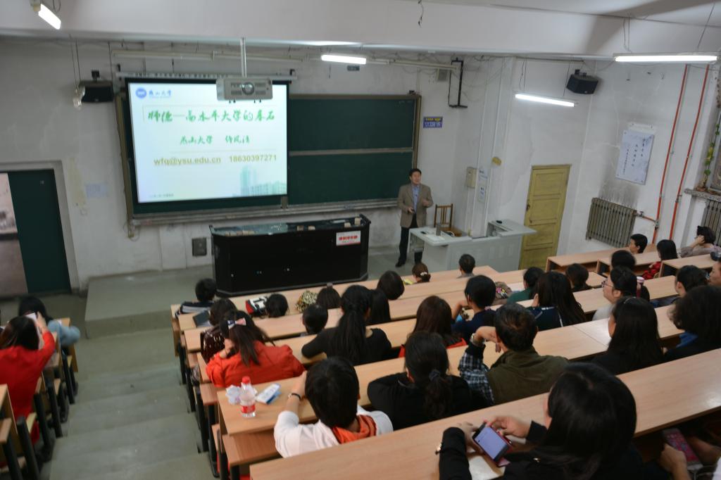 【新闻中心讯】10月16日下午4点,在二教102教室,我院邀请校党委宣传部长仵凤清教授为全体教师做了题为“师德——高水平大学的基石”的报告。学院领导班子成员,全体教师参加了报告会,报告会由严冰书记主持。