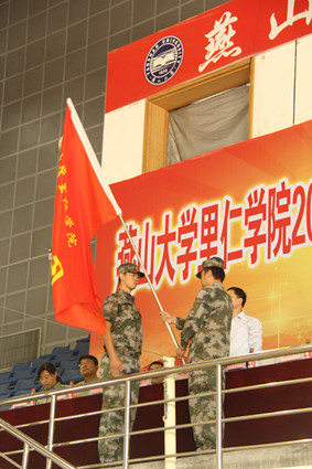 乐竞(中国)一站式服务官网副校长,里仁学院院长赵永生出席军训动员大会并向军训团授旗,中国人民解放军66470部队柏庆辉上尉和里仁学院其他领导出席了军训大会。