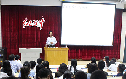 【新闻中心讯】9月24日晚7:30,由马克思主义学院主办,校团委、里仁学院协办,马克思主义研究会承办的第八十四期“红色旋律”讲坛在东区四教108举行。本期讲坛的题目是《发生在我们身边的抗战故事》,由花场峪抗日纪念馆馆长周庆信主讲。
