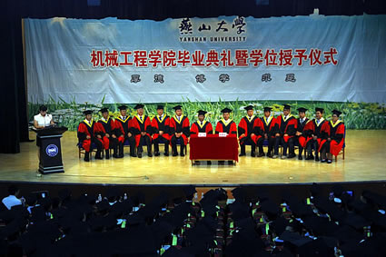 【新闻中心讯】6月30日上午9:00,机械工程学院2015届本科生毕业典礼暨学位授予仪式在西区大学生活动中心举办。机械工程学院院长、学位评定分委员会主席肖宏,学院党委书记、学位评定分委员会副主席高殿荣,学院副院长彭艳、王加春、金淼、李金良及各系部相关领导出席了本次毕业典礼。典礼由机械工程学院学生科科长王银思主持。