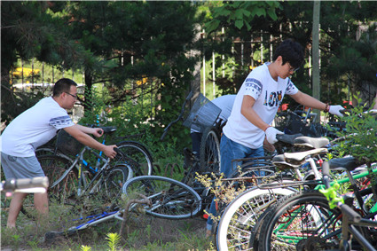 党支部书记、毕业生辅导员曹婷婷老师在活动开始前对全体毕业生党员发表寄语,她表示,作为党员,应时刻强化服务意识,在毕业生离校期间更要发挥模范带头作用,主动承担班级安全、事务管理等服务工作,鼓励大家通过自己的双手为学校做出应有的贡献。接下来,曹婷婷老师带领毕业生党员进行了美化校园志愿服务活动,完成东校区大学生活动中心以及六舍附近的垃圾清理、小广告清除、自行车摆放等工作。在劳动中,全体党员不畏酷暑,积极认真地完成了各项清理任务。