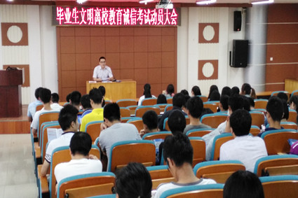 毕业班辅导员老师在大会上告诫学生,临近毕业,大四学生要注意各项时间节点,合理安排时间,按照学校、学院安排有序办理各项手续。并倡议同学们自觉遵守学校考试纪律和有关规定,认真参加大学英语四六考试和期末重修考试,用诚信撑起一方蔚蓝的天空,让舞弊行为远离校园,让诚信常驻心间,用扎实的知识、求实的态度、顽强的拼搏精神,向自己、老师、父母交一份完美的答卷。随后,请在场每一名即将参加考试的大四学生手签了《诚信考试承诺书》。