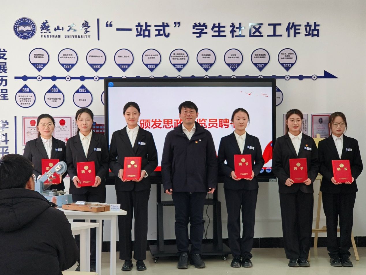 在全体师生的见证下,蔡星周与王国伟共同为“寓见科学”一站式学生社区工作站新场地揭牌。随后,薛传佳为工作站首批“学生思政导览员”颁发聘书。这批导览员立足材料学科特色,将通过生动讲解与互动展示,让科学家精神可感、可知、可行,引导青年学子树立科技报国的理想信念。