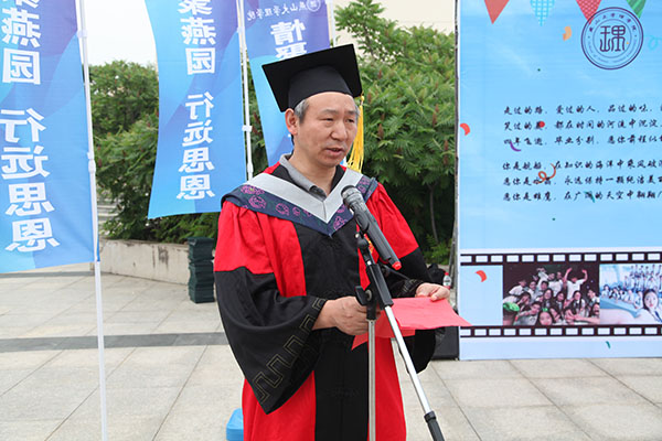 2019届应用物理学一班殷卓代表毕业生发言,他说“四年的大学时光,使我学到了知识,锻炼了能力,形成了良好道德观和正确的价值观,在即将毕业之际,希望每一位同学在未来路上都能更好的服务社会与他人,能够仰望星空、脚踏实地,无畏风雨,砥砺前行、实现自我价值。”刘永为毕业生们送上临别赠言,希望毕业生们要做社会良知的坚守者,做善良、正直、诚信、守信的人,拒绝做“高知坏人”。在今后的奋斗中,始终秉承“宝剑锋从磨砺出,梅花香自苦寒来”的精神,永不言弃坚持到底。无论今后你们走多远,也不论你们身在何方,母校的大门将永远向你们敞开,永远是你们的坚强后盾!