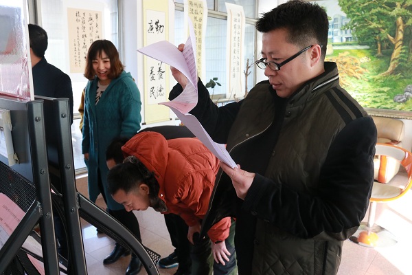 【新闻中心讯】12月7日,文法学院“学习十九大精神”征文大赛落下帷幕,征集的优秀作品在人文馆二楼开放阅读区展出,学院领导、教职工和学生参观了此次展览。