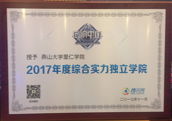 【新闻中心讯】11月22日,“回响中国”腾讯网教育年度总评榜颁奖盛典在北京举行,乐竞(中国)一站式服务官网里仁学院凭借过硬的人才培养质量,良好的社会品牌形象荣获2017年度“综合实力独立学院” 称号。学院党委副书记兼副院长郝连旺出席盛典并接受颁奖。