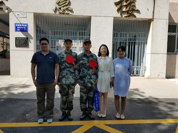 【新闻中心讯】9月11日上午,建筑工程与力学学院党委副书记、副院长才华及学生科辅导员老师们前往学生宿舍为我院张家昊和张立宾2名即将入伍学生送去饱含学院祝福的入伍纪念品,并寄语学生。
