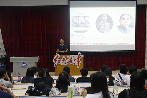 【新闻中心讯】9月7日晚7:30,马克思主义学院主办,校团委,里仁学院协办,马克思主义研究会承办的第一百一十六期“红色旋律”讲坛在东区四教108举行。本期讲坛的题目是《抗日战争与中华民族走向复兴》,由马克思主义学院包巍老师主讲。