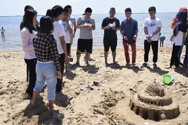 本次沙堡大赛以“丝绸之路”为主题,要求同学们围绕“盛世中华、神奇新疆、异域风情、海域风情”四种形式以及与此相关的主题进行作品创作。比赛共分为九组,同学们各抒己见,构思巧妙,活动现场热闹非凡,引来观众驻足观看。经过比拼,最终,2016级土木4班的“炫彩中华”获得一等奖。