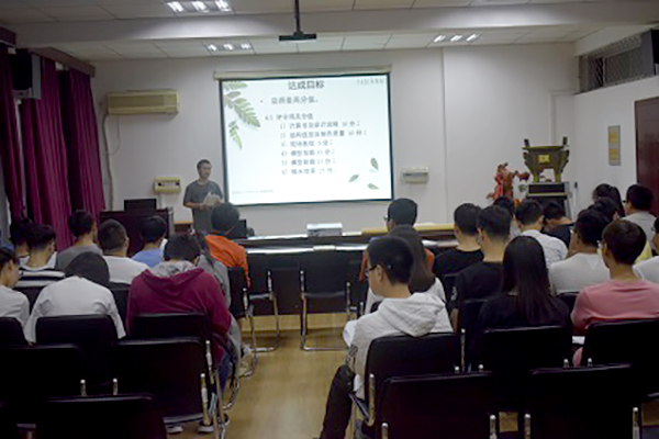 培训会伊始,赵建波老师为参赛队伍进行赛题分析。针对比赛题中应注意的拿分点、注意事项、要达成的目标等进行了详细介绍。赵老师鼓励参赛选手要开动脑筋,勇于实践,在自主结构设计中要注重培养创新思维和团队协作精神。第八届全国结构设计三等奖获得者李亚龙同学、王玉朋同学依次和在座的队伍分享了参赛经验和心得体会。他们鼓励学弟学妹们放下思想包袱,发挥平时所学,希望他们能够在预选赛中脱颖而出代表学校参加河北省结构设计大赛。
