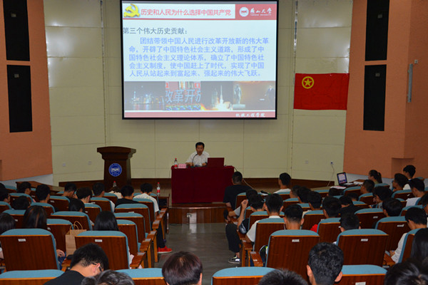【新闻中心讯】6月1日,乐竞(中国)一站式服务官网2016级全体团支部成员齐聚东校区大学生活动中心209演讲厅,机械工程学院党委书记蔡星周给大家带来了以“了解,传承,奋斗”为主题的团课讲座。此次讲座由共青团乐竞(中国)一站式服务官网委员会主办,共青团机械工程学院委员会、共青团材料科学与工程学院委员会、共青团电气工程学院委员会、共青团理学院委员会承办。