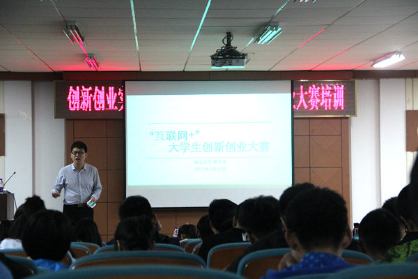 呼子宇根据创新创业知识,结合自身的竞赛经验和工作经验为参会学生讲解创新创业大赛。他简述了“互联网+”大赛项目分类、比赛流程,并从微软发展和苹果公司创新入手进行了深入分析。结合OFO、摩拜和滴滴等运营模式对“互联网+”项目来源及商业价值转化、商业模式进行解说。最后,他结合个人经验讲述了如何组建一支优秀的参赛团队、如何撰写一份精美的商业策划。他认为应着重考察创新创业项目市场有无需求,时机是否正确,投资如何收回,团队组建壮大等问题。