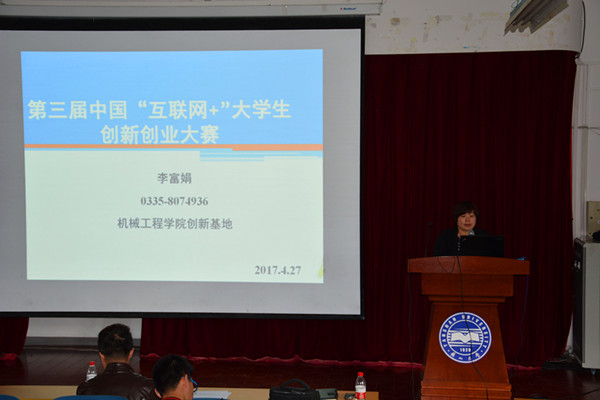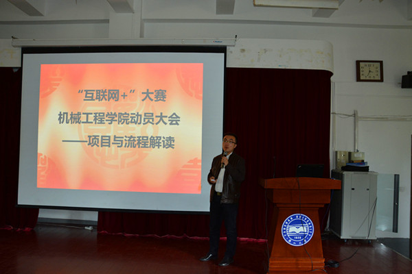 【新闻中心讯】4月27日,乐竞(中国)一站式服务官网机械工程学院在东校区机械馆J3教室,举行了全国“互联网+”大赛动员大会。机械工程学院各个年级的学生均参加了会议,2015级辅导员崔博凯、创新基地指导教师李富娟出席并主讲了本次会议。