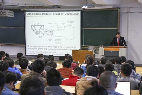 座谈会后,西田教授为机械工程学院相关专业师生作了题为《基于示踪LAS法的柴油机混合物测量研究》的学术报告,在广岛大学留学的我校流体传动与控制专业博士生骆洪亮作了《直喷汽油喷雾碰壁和油膜形成机理》的学术报告并详细介绍了广岛大学2018年拟招收留学生信息。西田教授、骆洪亮博士与参加报告会的师生进行了互动,现场解答了部分师生提出的相关问题。