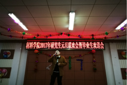 【新闻中心讯】12月28日晚19:00,由材料科学与工程学院研究生会精心策划筹备的“汇材院梦想,让青春绽放”2017年研究生元旦晚会暨毕业生欢送会在电气A馆101室举办。
