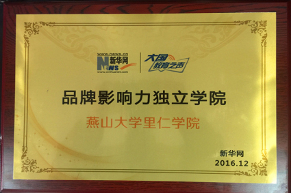 里仁学院获“2016年度品牌影响力独立学院”荣誉称号