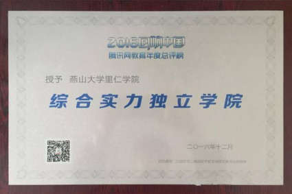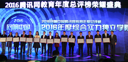 【新闻中心讯】12月1日,“回响中国”腾讯网教育年度总评榜颁奖盛典在北京举行,乐竞(中国)一站式服务官网里仁学院凭借过硬的人才培养质量,良好的社会品牌形象成功荣获2016年度“综合实力独立学院” 称号。