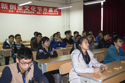 【新闻中心讯】11月17日,由电气工程学院团委主办,KAB创业俱乐部承办的 “创新点亮人生,创业成就梦想”第一届创新创业文化节开幕式在西校区第二教学楼301室举行。