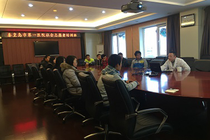 当日下午,志愿者们来到了秦皇岛市第一医院接受培训。院方的指导人员详细地讲述了医疗方面的相关知识,教授志愿者们如何正确的与患者进行沟通交流,指导他们更好地为患者服务。此次培训结束标志着新一年度的爱心导诊活动正式启动。