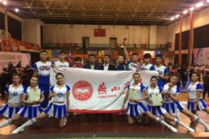 【新闻中心讯】11月25-27日,2016-2017年全国啦啦操联赛(保定站)暨中国啦啦之星争霸赛(保定站)在河北省保定一中举行,经过激烈角逐,我校健美操队取得了花球规定动作第一名和技巧规定动作第一名的好成绩,并获得代表中国大学生参加2017年国际大学生啦啦操系列赛事的资格。高婧、王亚薇老师获得“优秀教练员”称号。