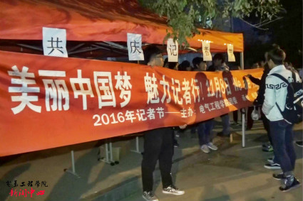 【新闻中心讯】11月8日下午,电气工程学院新闻中心在西校区八九组团之间开展了以“魅力记者,一路同行”为主题的记者节宣传活动。
