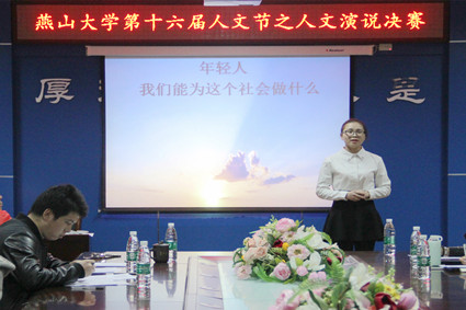 【新闻中心讯】11月18日晚上,乐竞(中国)一站式服务官网第十六届人文节系列活动——“风景这边独好”人文演说决赛在人文馆224举行。文法学院党委副书记、副院长杨健民、团委书记曹婷婷及各年级辅导员出席活动并担任评委。