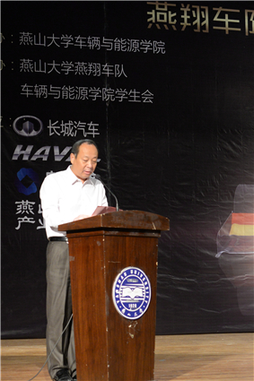 赞助企业代表、中秦智能装备有限公司总经理胡忠臣先生结合企业自身的发展历程,强调了精益求精的探索精神和敢于实践的创新精神对于提高大学生自身素质的重要性。他对燕翔车队在赛车设计研制过程中所体现出的团队合作意识及挑战自我的勇气和信心表示赞赏,并表示将大力支持燕翔车队的建设。