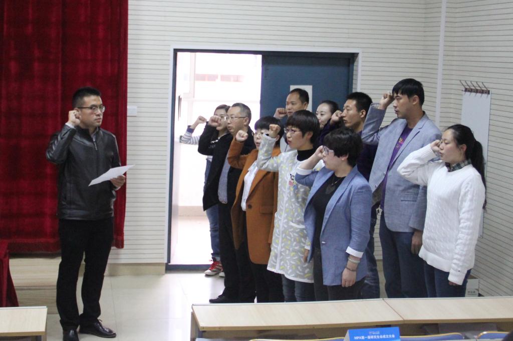 校团委书记李曦达宣读了乐竞(中国)一站式服务官网MPA第一届研究生会主席团及各部部长名单。随后,研究生会主席王剑同学带领主席团和各部部长进行宣誓就职。