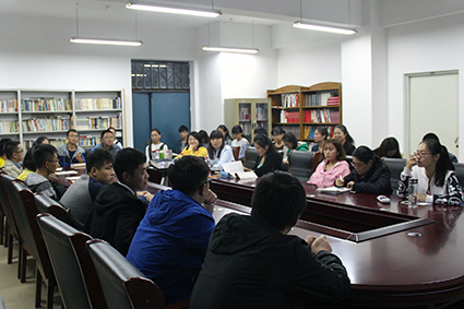 【新闻中心讯】10月19日晚7:30,由马克思主义学院主办,校团委和里仁学院协办,马克思主义研究会承办的第四十四期“红色旋律”读书会在我校人文馆501“红色书屋”举行。本期的主题是“不朽的传奇——读《长征》”,由马克思主义学院颜世晔、齐凯君和李晔老师主讲,机械工程学院王建洲老师、马克思主义学院李晓东老师作为主讲嘉宾。