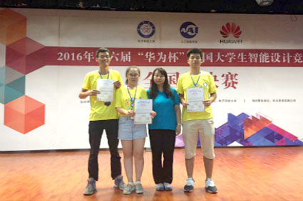 【新闻中心讯】近日,2016年第六届“华为杯”中国大学生智能设计竞赛全国总决赛在电子科技大学落下帷幕。由我校电气工程学院温淑焕教授担任指导教师,张志尚、马金荣、李振三名学生组成的“雷厉风行”代表队作品“基于Camera-laser的NAO机器人的自主行走”获得二等奖。
