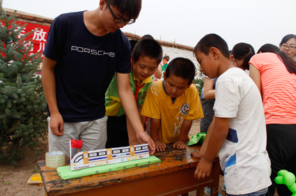 “关爱留守儿童服务团”成员为小朋友们表演科普实验