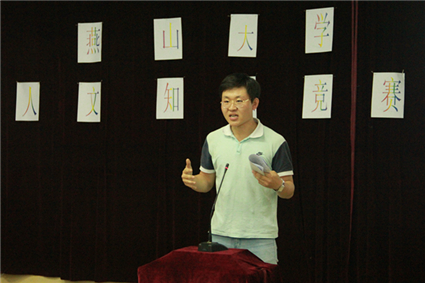 比赛伊始,选手们迅速调整好状态投入到第一环节的比拼中。第一环节必答题环节,涉及文学、历史、艺术、自然等各个方面,选手们沉着冷静地应对各种难题,真正体现了当代大学生良好的心理素质和广博的学术修养。第二轮即兴说理环节,既考验了选手们的知识储备和应变能力,又锻炼了选手们的语言组织和表达能力。在此环节,选手们紧扣主题,观点鲜明,条理清楚,谈吐自然,赢得了在场观众和评委的阵阵掌声。第三轮人文演绎环节,选手们围绕“知识分子是社会的良心、民族的脊梁和文明的使者”这一主题进行创作与演绎。各代表队结合多种表现形式,充分发挥想象力与创造力,表演精湛,内容丰满,为观众带来了一场视觉盛宴。王永副教授和李丽教授分别就选手们在即兴说理和人文演绎两个环节的表现进行了专业点评。最后,参赛选手、工作人员和评委老师们合影留念,人文知识竞赛落下帷幕。