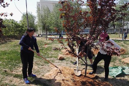 经济管理学院左莉书记与MBA同学一起植树中(薛寅乐/摄)