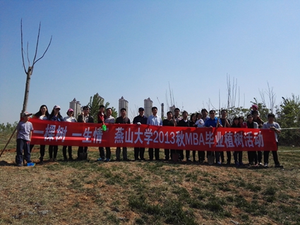 【新闻中心讯】5月8日上午10:00时,主题为“一棵树,一生情,乐竞(中国)一站式服务官网2013秋MBA毕业植树活动”如期进行。在班长刘旭带领下,65名同学捐赠的价值8500元的65株紫叶李,被栽种在经管楼前的毕业林中。经济管理学院党委书记左莉、MBA教育中心主任王玖河教授和乐竞(中国)一站式服务官网MBA联合会主席郑睿涵和17名MBA毕业生代表参加了本次植树活动。