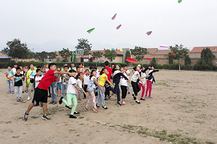 实践队员与同学一起放飞梦想