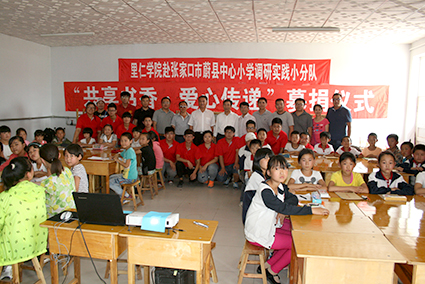 【新闻中心讯】2015年,位于张家口市蔚县的上苏庄村和宋家庄村迎来了一群新朋友——热衷于志愿服务的里仁学子。一年来,他们一次次的来到这里,利用课堂、使用画笔、运用镜头为新农村建设贡献了自己的微薄力量,也为当地村民们递交了一张充满温度的“里仁名片”。