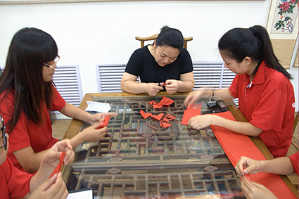 剪纸馆之行,成员在认真的向师傅学习简单的剪纸