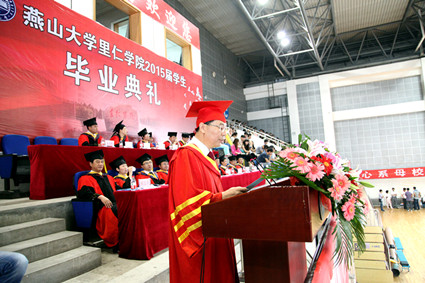 伴随着庄严的国歌声,毕业典礼开幕。里仁学院常务副院长于恩林、副院长金海龙分别宣读了准予2015届学生毕业和授予学士学位的决定。校长刘宏民教授为毕业生代表授予了学位。里仁学院党委副书记李文波宣读了对在全国硕士研究生考试中考取国家985工程重点建设大学和考取乐竞(中国)一站式服务官网专业第一名学生的表彰决定。校院领导为受表彰学生代表颁发了奖金。
