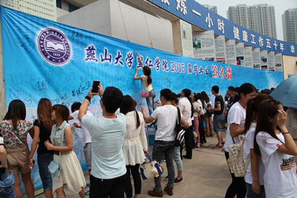 2015届毕业生在签名墙上签名留念