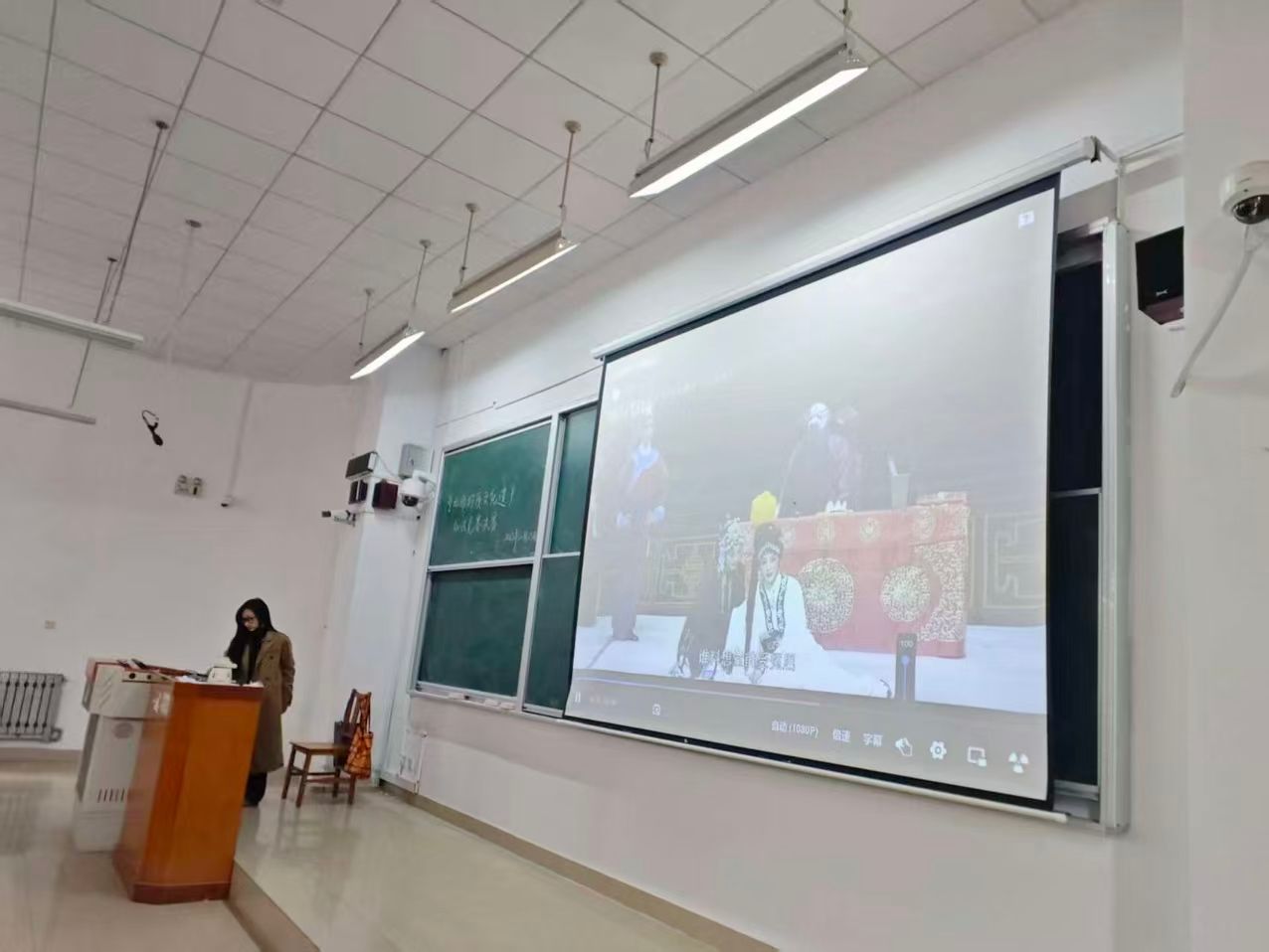 在非遗展示环节,项目团队成员以《燕赵梆韵:河北非遗掠影》为题向同学们宣传展示,带领大家学习、领略河北梆子等非遗的起源、经典剧目以及保护与传承,寓教于乐,让学生们在欣赏精彩的非遗表演中学习河北省非物质文化遗产知识,进一步激发学生们传承与弘扬河北省优秀传统文化的兴趣。